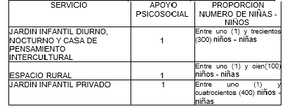 Cuenta con un(a) profesional de apoyo psicosocial. Título profesional en el área de psicología, trabajo social o psicopedagogía. Con experiencia profesional de 1 año relacionada con el desarrollo de las actividades inherentes a su perfil. La disponibilidad en el servicio se debe presentar en la siguiente proporción: