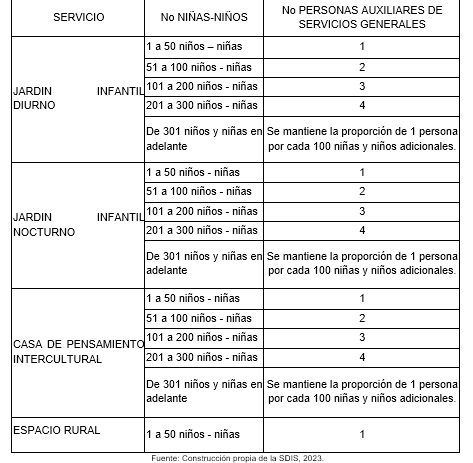 Cuenta con personal exclusivo para auxiliar de servicios generales, con formación en básica primaria y con experiencia relacionada de 6 meses en cargos similares. La disponibilidad en el servicio se debe presentar en la siguiente proporción: